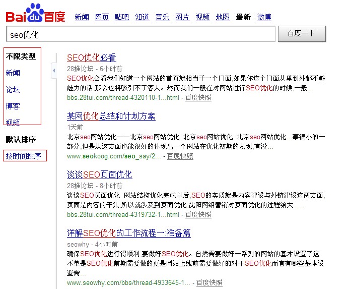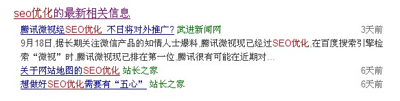 比如,通过百度搜索引擎搜索“seo优化”,那么一般在首页会有seo优化的最新相关信息。这里也是我们挖掘外链资源的一种好方法。