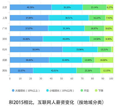 并且超过半数的杭州互联网人的薪资在过去一年中大幅增长(10%+)。