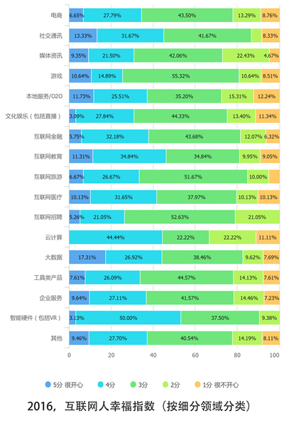 大数据行业的互联网人幸福指数最高。