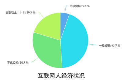 半数互联网人或多或少正处于经济窘迫之中,1/5的互联网人(比如作者本人)正穷到吃土啊同志们!!!穷到吃土!!!关爱互联网人,从我做起。