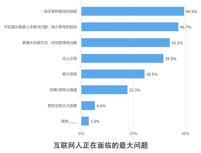 并且,四成互联网人认为,无人引导正在成为目前工作中遇到的最大难题。