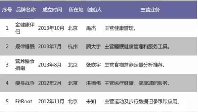 通过列表可以看出,死亡企业多以健康管理为主,从事该领域的企业较多,不利于形成竞争优势,一旦没有巨头注资,很容易被行业淘汰。